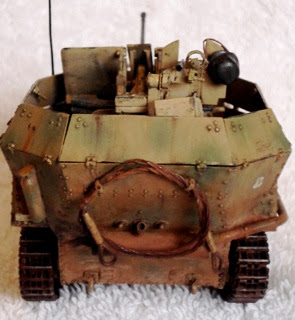 Hola, les dejo unas fotos del Flak ya pintado, como se puede ver deje con separación (intencional) las puertas del habitáculo donde va el flak, esto con la intención de que se note el uso que le daban a estas puertas, estaba la opción de dejarlas abiertas pero en lo personal me gusto más como se veia asi. El interior lo pinte con Panzer Interior Buff de Model master, la base del exterior es de una mezcla que hice de con Panzer Grey, Flat Earth, Sand yellow y Flat White con pinturas Tamiya y el camuflage verde lo pinte con el color Panzer Olivgrun de Model master. El motor esta pintado de color negro y dry brush con color mettallic grey de Tamiya. Los tracks por ahorita son con el color Hull red de Tamiya. Los decals los pegue con el set de Microset los 2 frascos (He escuchado que no funcionan bien, pero a mi me han dado unos excelentes resultados). Bueno quedan pendientes los acabados..... a ver como nos va